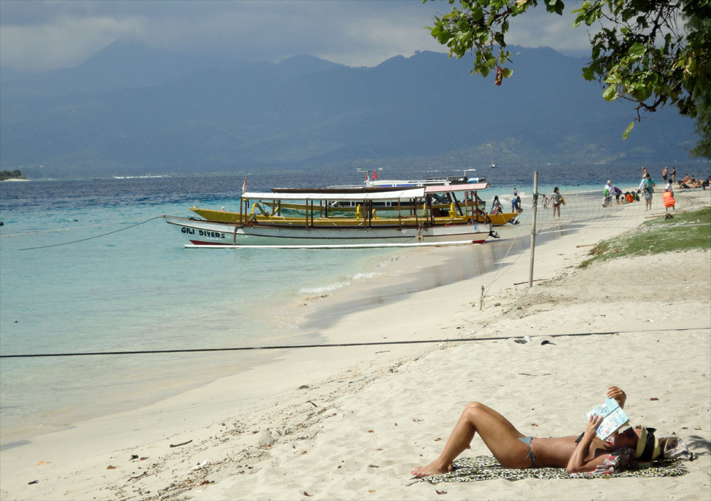 Catatan: bule-bule di gili sangat menghormati aturan adat. Misal, mereka diperbolehkan berbikini hanya di tepi pantai. Tapi saat memasuki kawasan pemukiman penduduk. Mereka diwajibkan memakai pakaian/ kain yang menutupi tubuh.