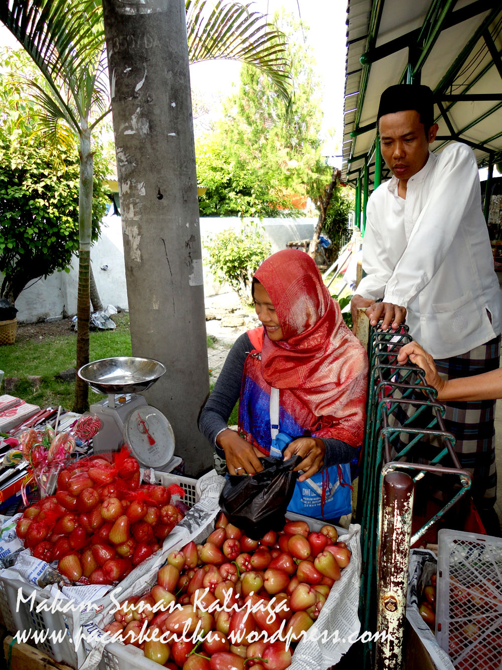 Pada saat kami datang, saat itu makam Sunan Kalijaga sedang ramai dengan orang-orang yang berziarah. Kami bertemu dengan banyak orang yang memakai pakaian semacam Syeh Puji.