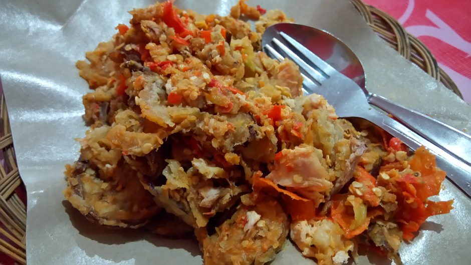 Ini penampakan Ayam Geprek cabe 15. Komposisinya ayam, tahu, tempe, terong. Seporsi 12rb. Nasi dan lalapan bisa ambil sepuasnya.