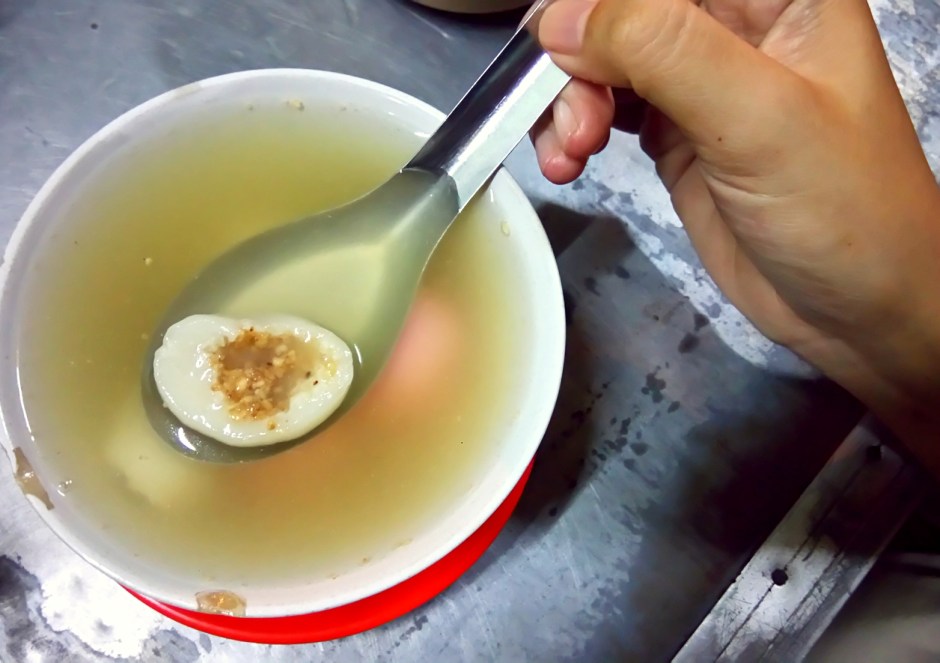 Wedang Ronde buatan Nyah Galak sangat simple. Dengan isian ronde dari kacang tanah dan kuah jahe yg sangat light. Sangat laris dengan antrian yg begitu panjang.