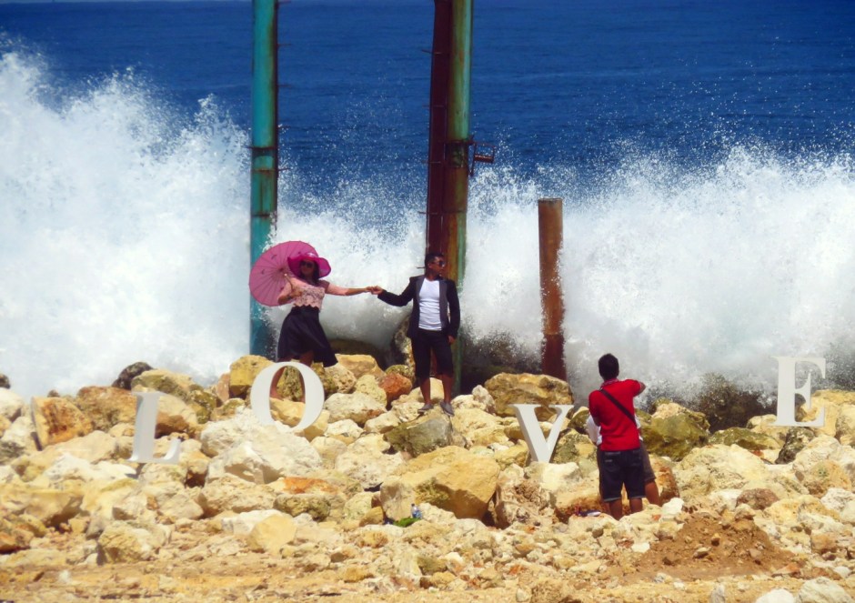 Saya dan teman-teman sedang memperhatikan suasana pantai yg setiap sudutnya sedang pemotretan prewed.