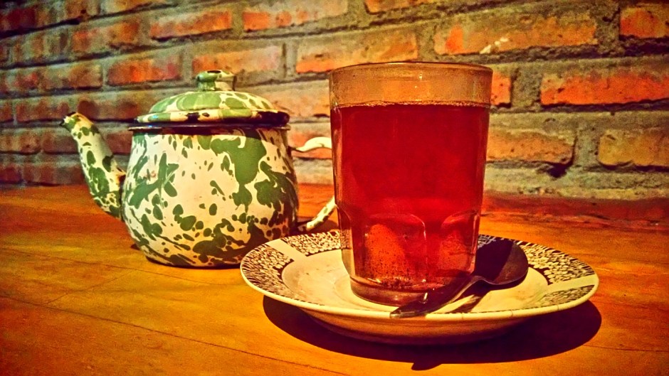 Sambil menikmati teh gula batu. Kami pun duduk. Sabar bukan milik bapak Kyai dan Ustadz. Sabar itu milik kami. Para pembeli. Kami adalah Raja yg disuruh sabar. – at Bakmi Jowo Pak Jono