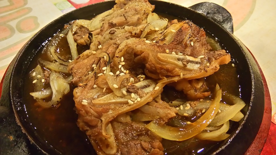 Iga sapi panggang dengan saus kecap ala Korea. Menggunakan daging sapi impor pilihan, dimasak dengan racikan bumbu kecap, dan resep rahasia keluarga.